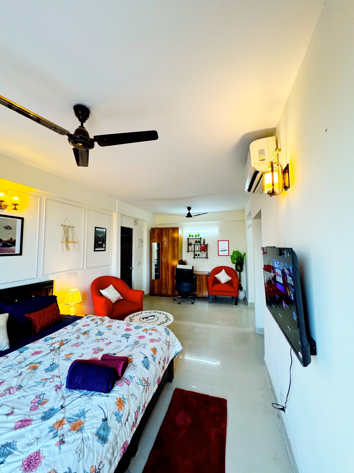 Koge Gurugramis selles avaras mugavaks ja mugavaks kujundatud korteris kaasaegset elu. See on 4bhk korter, kui broneerid 4 inimesele, saad 2 magamistuba, kui broneerid 5 või 6 inimesele, antakse 3bhk. Kõigis magamistubades on privaatne vannituba ja täielikult varustatud köök. Asub parimas piirkonnas DLF Cyberhubi, Golf Course Roadi, Ambience'i kaubanduskeskuse ja metroojaama lähedal. Korterist pääseb sujuvalt peamistesse ärikeskustesse, kaubanduskeskustesse, koolidesse ja haiglatesse
