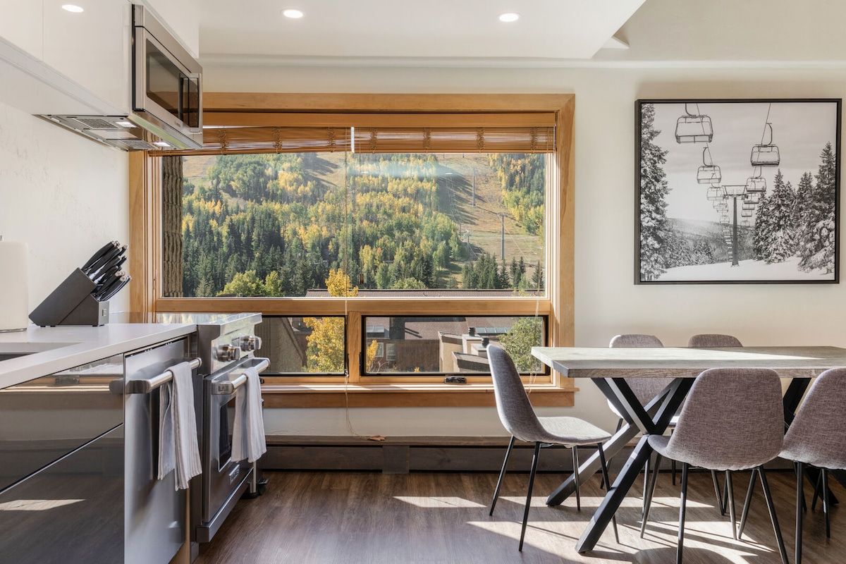 Please note. Early check in/Late check out not available. Kick back and relax in this calm, stylish space. Our warm and welcoming condo is nestled in a quiet but convenient area very close to lifts and town. Cozy up to the gas fireplace, Relax on the covered deck Adirondak chairs with coffee or a cocktail. Use the provided robes to take an easy stroll to the pool and hot tubs after a day of skiing or hiking. Mountain luxury is just a click away!