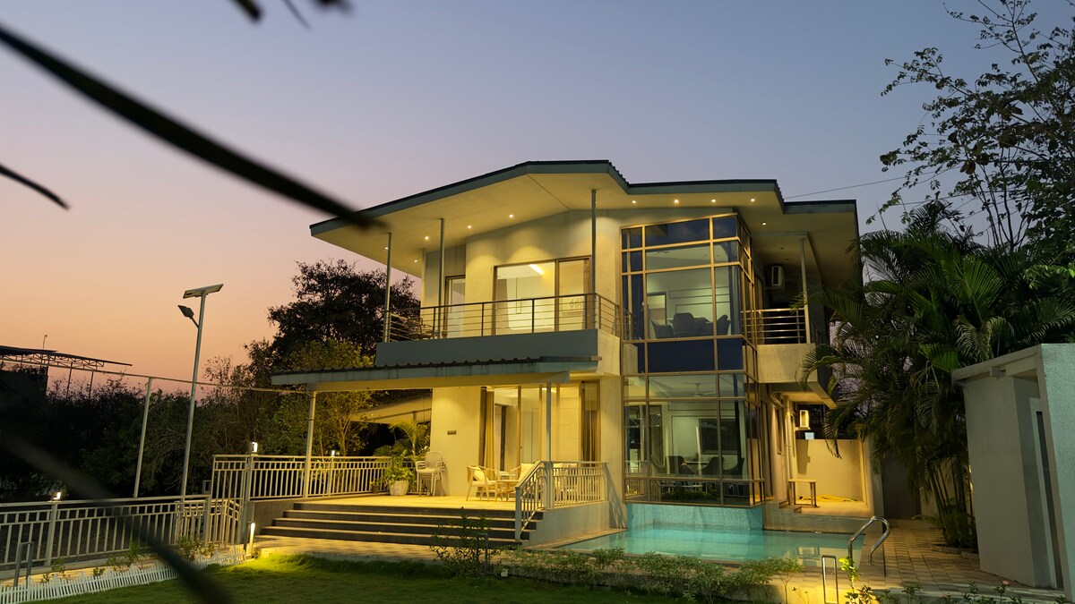 Just two hours from Mumbai, this elegant private villa is a serene escape designed for comfort and style. It offers two spacious bedrooms with attached bathrooms, a generous living area, and a modern pantry equipped for light cooking. Step outside to your private pool and garden—ideal for unwinding in complete privacy. With air-conditioning, high-speed Wi-Fi, a 54-inch TV, and tastefully curated interiors, this villa promises a refined, relaxing stay away from the city’s rush.