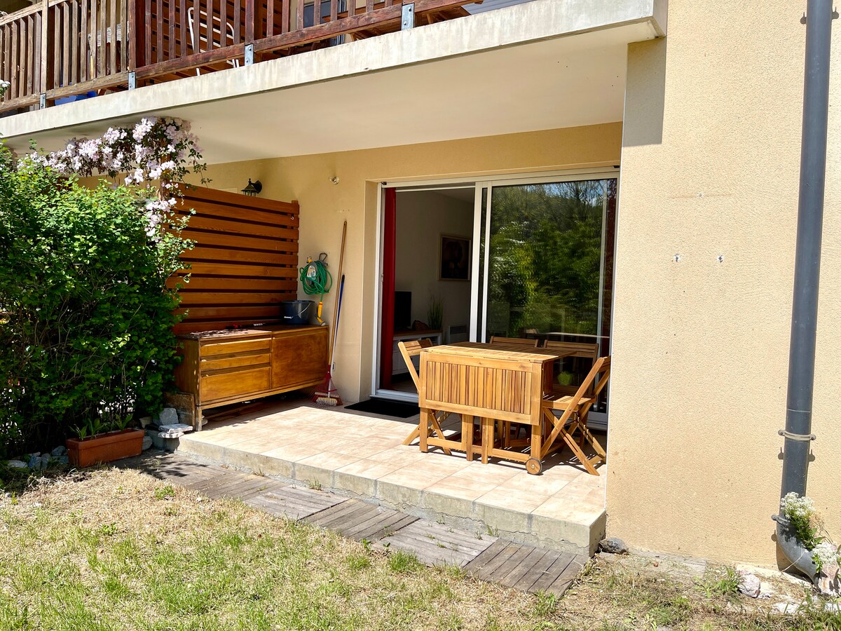 Renoveeritud 28 m2 suurune korter meie maja esimesel korrusel, kuhu pääseb spiraaltrepist. 18 m² lõunapoolne terrass, takistusteta vaated mägedele. Vaikne naabruskond. 1 tuba varustatud kööginurgaga, elutuba televiisoriga, wifi, diivanvoodi, 1 magamistuba kaheinimesevoodiga (140 x 190 cm) ja kaks narivoodit (90 x 190 cm). 1 vannituba duši ja tualetiga. Ideaalne majutus kahele, võimalik kuni neljale inimesele. Parkimine privaatses parklas. 900 m kesklinnast ja raudteejaamast.