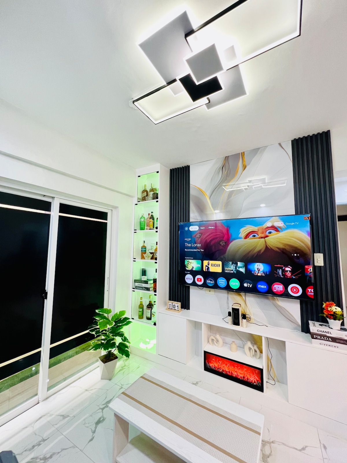 Welcome to Shia Staycation! A serene and stylish retreat within Trees Residences. Minimalist Design: Clean, simple, and elegant space. Entertainment Hub: 55" Smart TV with Netflix, Karaoke and a PS4. Ambiance Lighting: Multi-color lights for any mood. Comfortable Bed: Hotel-grade Double-sized bed for restful sleep. Modern Amenities: High-speed WiFi, fully equipped kitchen, study/computer table. Bathroom Comforts: Water heater with a table top. Ample Storage: Spacious cabinet for organization.