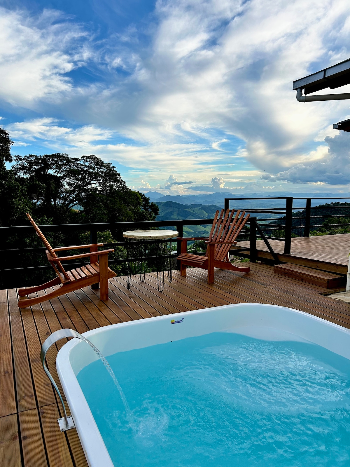 Respire o ar puro das montanhas capixabas com uma vista incrível da Pedra Azul. Viva uma aventura em uma casa em madeira de reflorestamento com todo o conforto e sossego que você merece. No entardecer, desfrute do deck enquanto assiste ao espetáculo de mudança de cores da Pedra Azul. Da banheira de imersão vislumbre a Pedra Azul de um lado e o Pico de Forno Grande de outro. Aquecimento de água, cooktop de indução, geladeira com congelador, natureza pra todos os lados e muito mais.