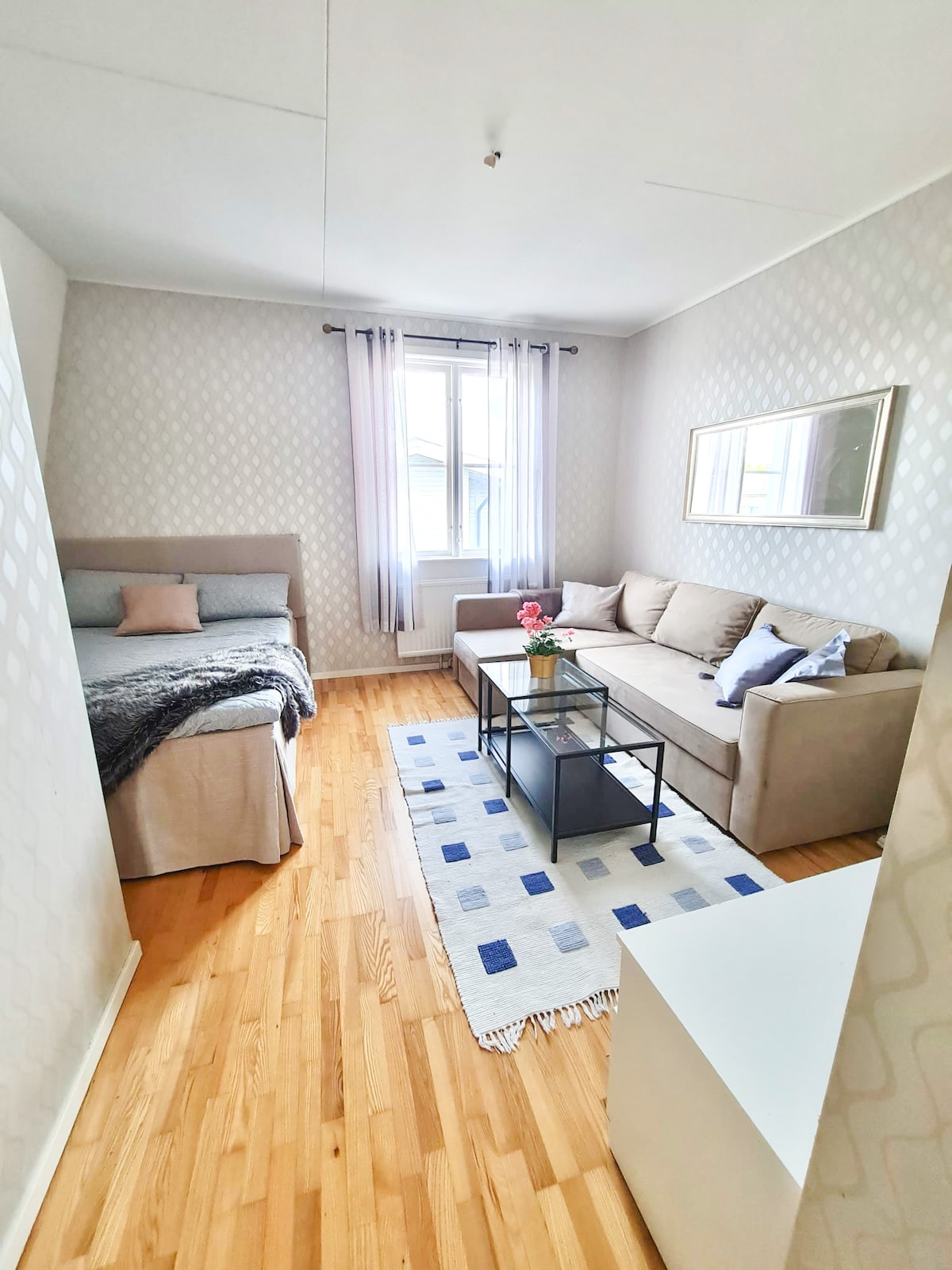 Kahe magamistoaga korter Västeråsi kesklinnas. Ideaalne 1-4 külalisele. Korter on 45 ruutmeetrit ja asub meie privaatse villa teisel korrusel. Seal on magamistuba/elutuba, köök, vannituba ja oma rõdu, kust avaneb vaade meie aiale. Korter on varustatud kõigega, mida vajad nii lühi- kui ka pikaajaliseks viibimiseks. Olemas on kaheinimesevoodi (140 cm) ja diivanivoodi, kus on ruumi kahele ja mis asuvad samal toal.