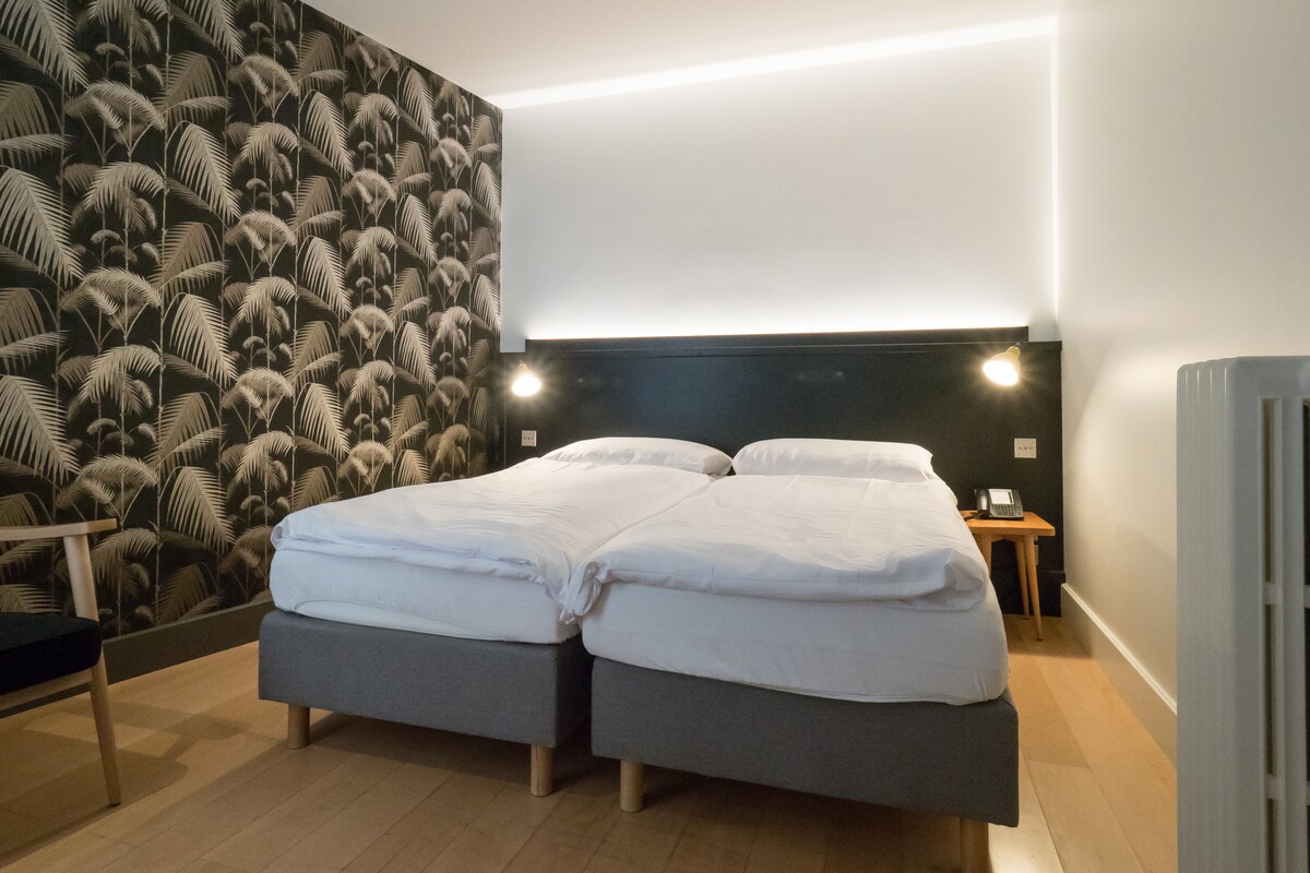 Friendly and welcoming boutique hotel in the heart of Geneva. Enjoy a cozy room with cable TV, high-speed Wi-Fi, A/C, radio, alarm clock, safe, coffee machine, and direct-dial phone. Just steps from the lake, Old Town, and Geneva’s best shopping, dining, and business areas. Excellent public transport connections—free for all guests during their stay (card available upon request at reception)—make exploring the city easy and convenient.