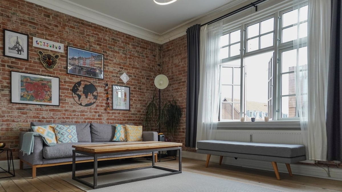 Väga avar ja stiilne korter, mis on täielikult varustatud pikaajaliseks peatumiseks. Korter asub traditsioonilises vanas hoones teisel korrusel. Sellel on kõrge lagi ja elutoas on avatud telliskivisein. • Jalutuskäigu tänav - 1 minuti kaugusel • Sotsiaalne söögituba - 1 minuti kaugusel • Bussipeatus - korteri lähedal • Toidupood - korteri ees • Rongijaam - 10 min • Parkimismaja - korteri ees • Läheduses - kunstimuuseum, Spinderihallerne, Sheesha, uisutusväljak, Bryggen Mall, rand, hirvepark, raamatukogu
