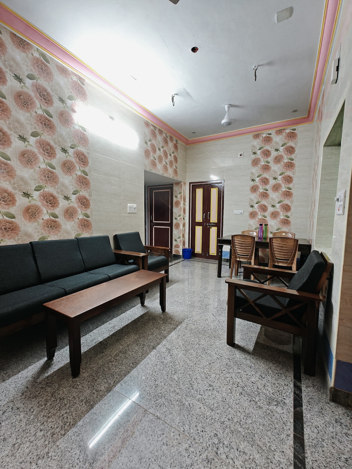 Single Room for Rent – 1st Flr of 4BHK Bungalow (Near Sripuram Golden Temple) We are located just 1.5 km from Sripuram Golden Temple! The house is currently occupied by my parents and our pet dog, so please book only if you are comfortable with pets. Shared access to the hall and dining area Kitchen access can be provided upon prior request House Rules: No loud music or noise after 10:00 PM No smoking inside the house Ideal for someone looking for a peaceful and respectful living environment.