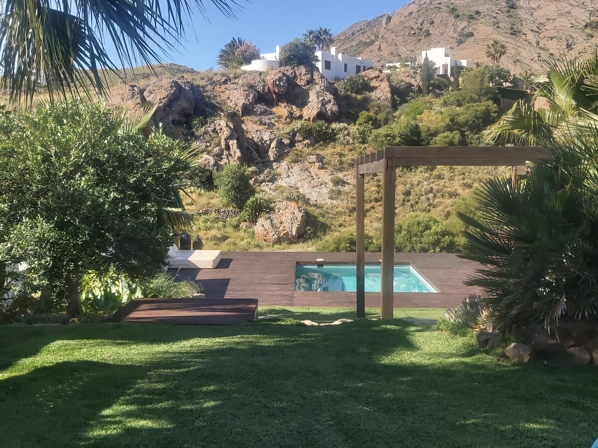 Suurepärane korter nautida paar päeva puhkust ja lõõgastust kõrval Cabo de Gata ja selle rannad. Golfiväljaku kõrval ja lühikese jalutuskäigu kaugusel rannast. Päevita ühel maja kahest terrassist/aiast. Seal on kaks magamistuba, peamine vannitoaga, täielikult varustatud köök ja elutuba, kust pääseb otse aeda. Juurdepääs ühiskasutatavale basseinile otse peaterrassilt/aiale. Privaatne parkimiskoht. 600 MB kiudoptiline wifi, NETFLIX, kliimaseade.