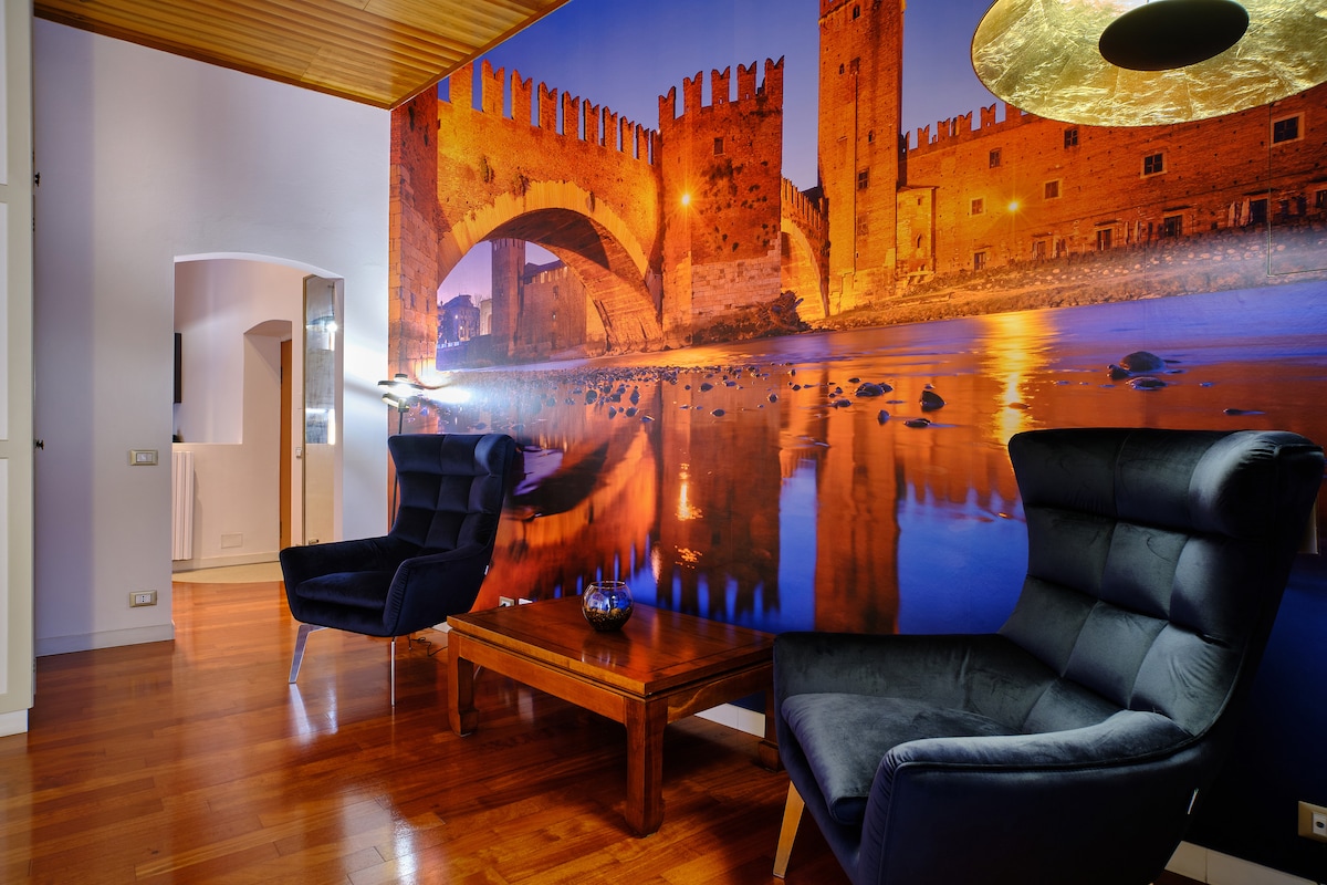 La Residenza Mazzini è un maestoso appartamento nella via più importante della città. Con oltre 200 mq l'appartamento è tra le strutture più importanti di Verona per la magnifica posizione e i numerosi affreschi che dominano il soffitto della casa. Composto da 3 meravigliose camere da letto, l'appartamento ha 3 superbi bagni in marmo ognuno di competenza. L'arredamento di pregio e un dettaglio che lo rende unico è il pianoforte situato nel centro della sala.
