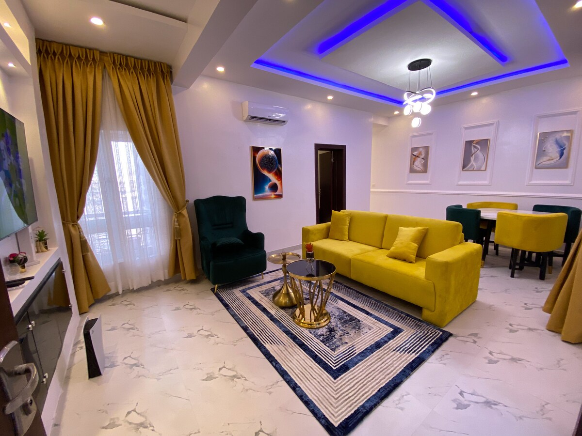 Tere tulemast Elmstead Luxury Aprti , oma stiilsesse puhkepaika Lekki Ikotas. See 2BR/2BA pelgupaik pakub kliimaseadme mugavust, 65-tollist telerit elutoas, 43-tollist telerit magamistubades, tasuta stabiilset piiramatut WiFi-ühendust ning ööpäevaringset võimsust inverteri ja päikeseenergiaga. Naudi nutilukuga iseseisvat sisseregistreerimist, tasuta parkimist, pesumasinat ja laste põrkavat lossi. 1 tasuta koristamine üle 5-6 öö pikkuste peatumiste puhul. Lekki looduskaitsekeskuse, Mega Chickeni, Blackbelli ja Blemco lähedal. ideaalne üksikreisijatele, ärikülalistele, peredele või pikaajalisele peatumisele
