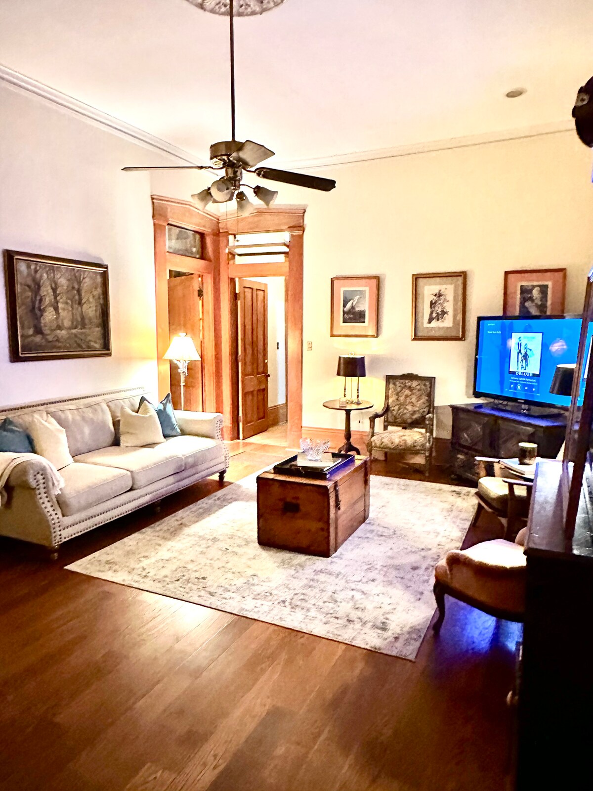 Lühikese autosõidu kaugusel riiklikust sõjaväepargist ja paljudest antebellumikohtadest. Ilus viktoriaanlik kodu kivist välisilme ja ainulaadse ümmarguse torniga põrandast katuseni - see majutuskoht on elegantne ja väärikas kõigi kaasaegsete mugavustega. Selles on tohutu gurmaaniköök kahekordsete ahjude ja graniidist tööpindadega. Ilusad taskuuksed ja 12 jala kõrgused laed. Fuajee, pool vannituba ja pesukööki on allkorrusel. Üleval on 4 magamistuba, kus kõigil on oma privaatne vannituba. Me ei luba pidusid.