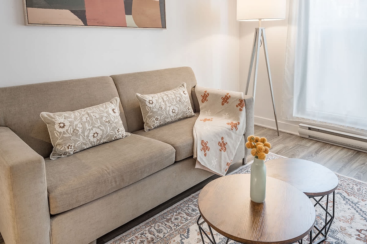 Tere tulemast meie kaasaegsesse ühe magamistoaga korterisse Vana-Montreali südames. See hubane puhkekoht, mis on kujundatud mugavust silmas pidades, olenemata sellest, kas külastad äri, romantilise puhkuse või linnaseikluse pärast. Vaid mõne sammu kaugusel võluvatest munakivitänavatest, ajaloolistest vaatamisväärsustest ja maalilisest veepiirist ümbritsevad sind parimad kohvikud, restoranid ja kultuuripärlid. Kuna läheduses on kaks metroojaama, on kogu Montreali avastamine lihtsam.