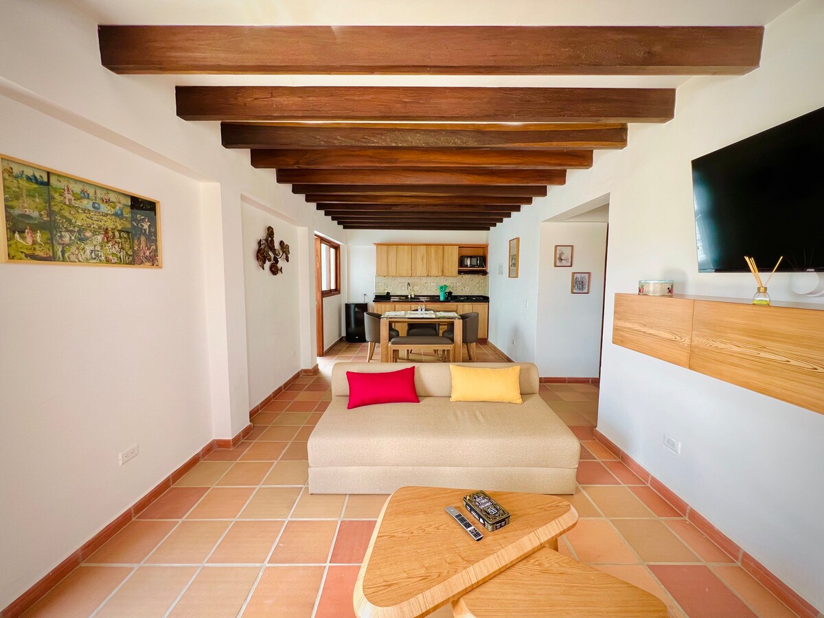 Apartamento Boutique donde la historia de Villa de Leyva se mezcla con el confort moderno, este espacio mixto combina la independencia y los servicios del Hotel Boutique & Spa VDL Colonial. Ideal para familias, este ofrece habitaciones tipo suite, zona social, cocina, sala y comedor, balcones con vista a la montaña. Los huéspedes pueden acceder a los servicios y experiencias del Hotel VDL Colonial: Restaurante, circuito hídrico, parqueadero y planes especiales.
