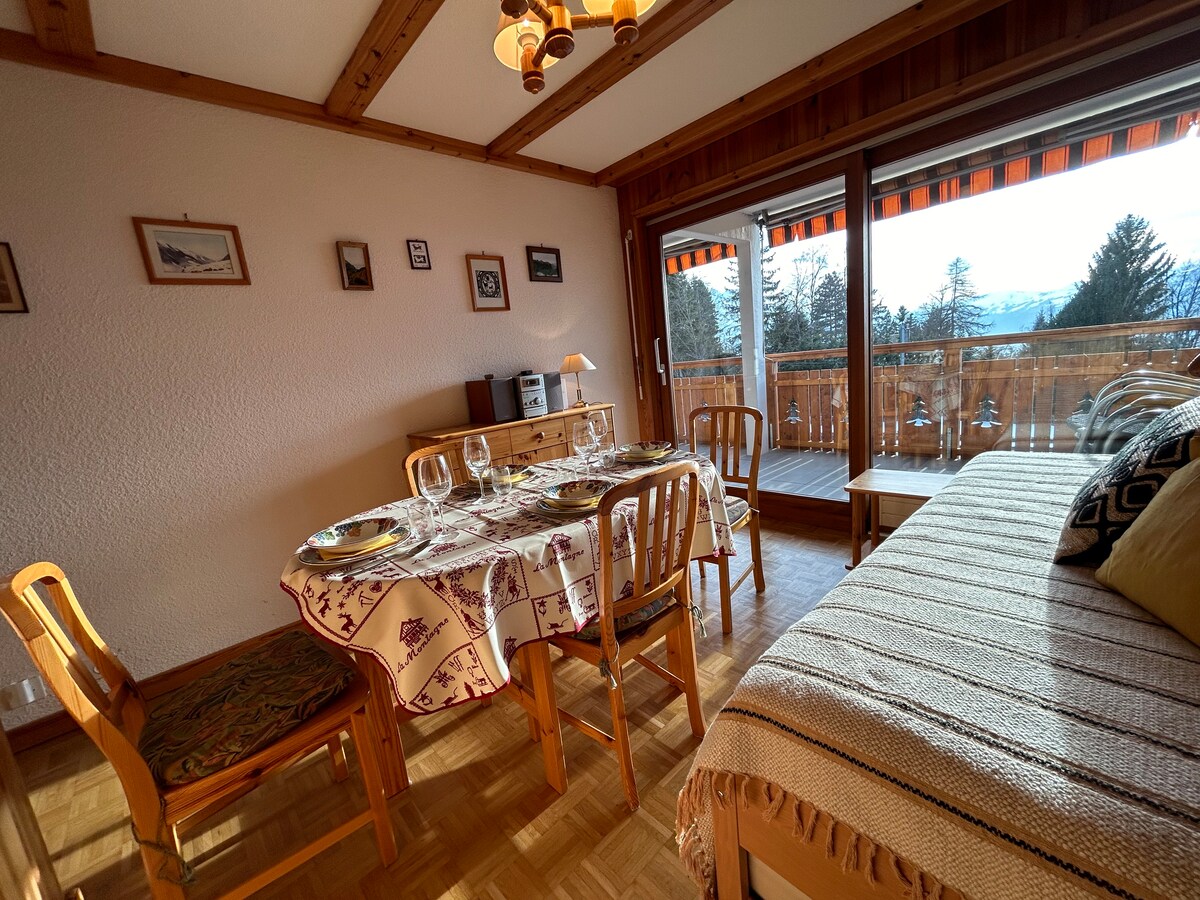Võluv ja valgusküllane korter, kust avaneb imeline vaade. Asub Villarsi südames keskses ja rahulikus asukohas. See pakub: - muljetavaldavad vaated mägedele ja suur terrass nende hindamiseks. - Särav ja ruumikas. - Asub kesksel kohal, kuid rahulik, hõlbus ja kiire juurdepääs restoranidele, baaridele ja supermarketitele. Asub otse kahe Villarsi suusatõstuki vahel, 8-minutilise jalutuskäigu kaugusel telekabiinist ja rongijaamast. Bussipeatus 3 minuti kaugusel. - Privaatne ja kaetud parkimiskoht.
