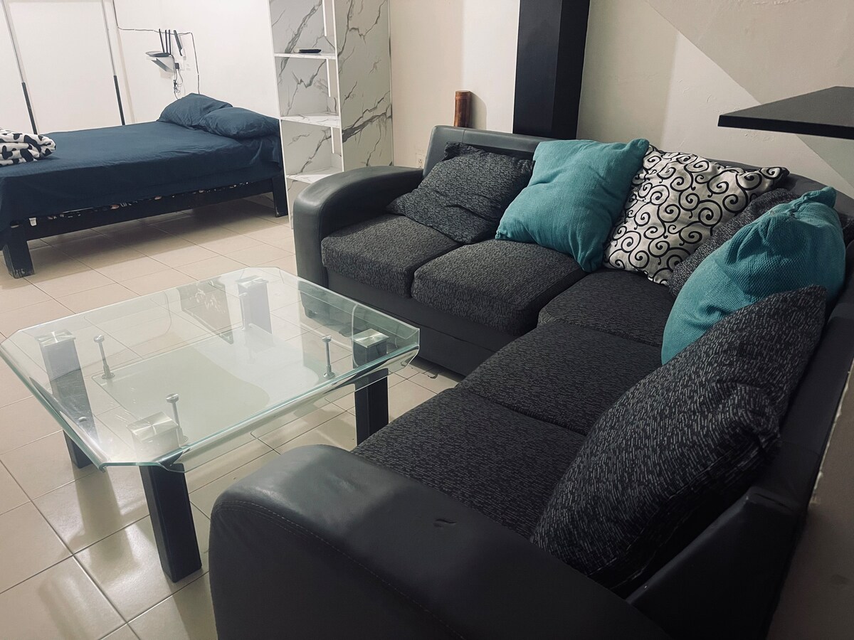 Täielikult sisustatud ühe magamistoaga korter, kus on sisseehitatud köök, külmik, mikser, mikrolaineahi ja söögiriistad, elutuba ja vannituba. Sõiduki parkimine territooriumil. Sisaldab ühte puhastamist , rätikute vahetamist nädalas. Asub 100 meetri kaugusel Plaza Jacarandasest ja 500 meetri kaugusel Plaza Cibeles 'ist. Kiire juurdepääs tööstuspiirkondadele. Ideaalne lühiajaliseks või pikaajaliseks tööks, meelelahutuseks või perele. Me registreerume.
