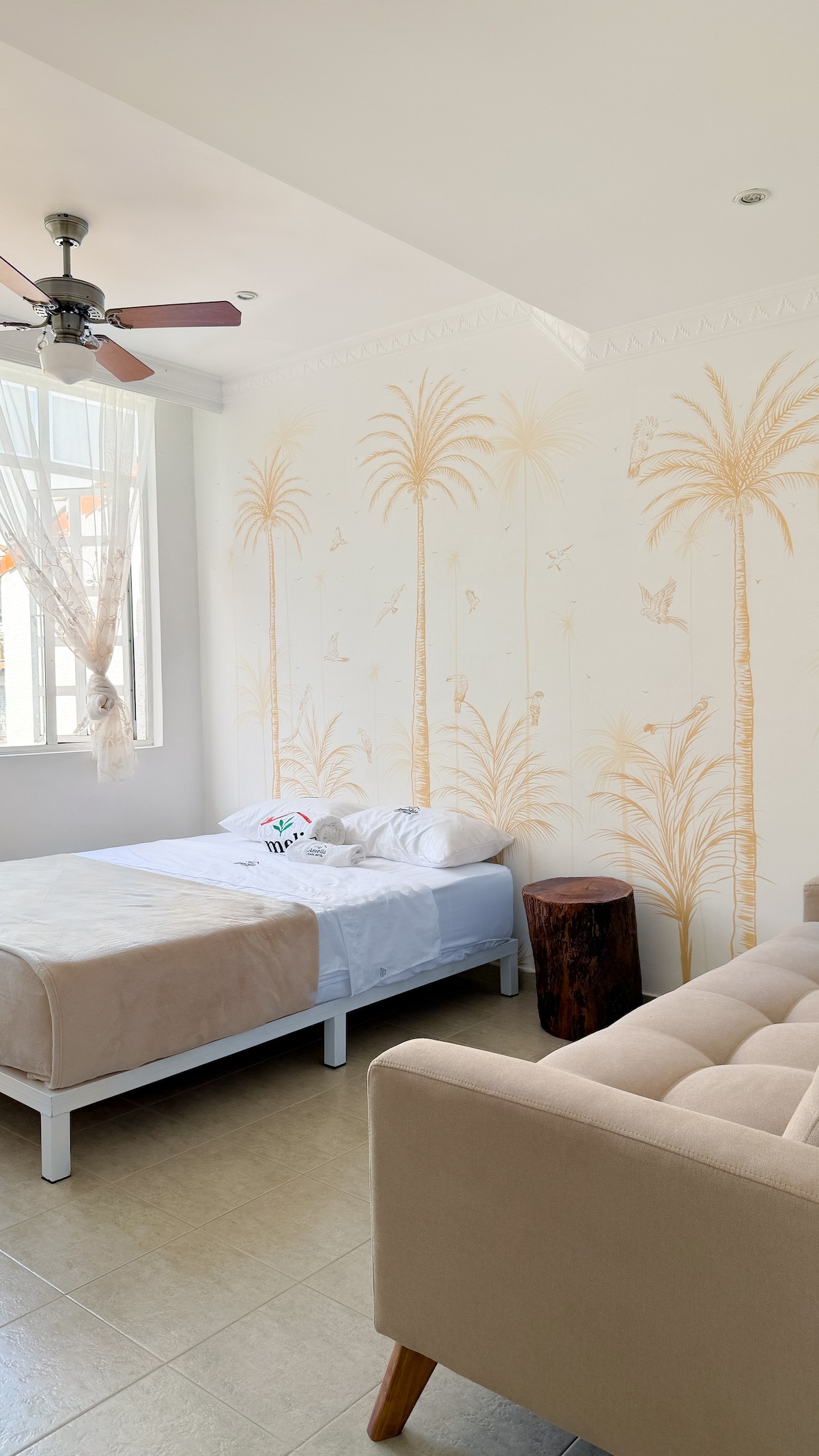 Acogedora habitación con cama doble, balcón privado y baño dentro de la habitación. Perfecta para parejas o viajeros que valoran la luz natural y un espacio tranquilo. Disfruta de WiFi, cocina compartida, comedor y sala de TV en un ambiente boho y natural. Ubicación central en Villavicencio, cerca del Hospital Departamental, clínicas y comercios.