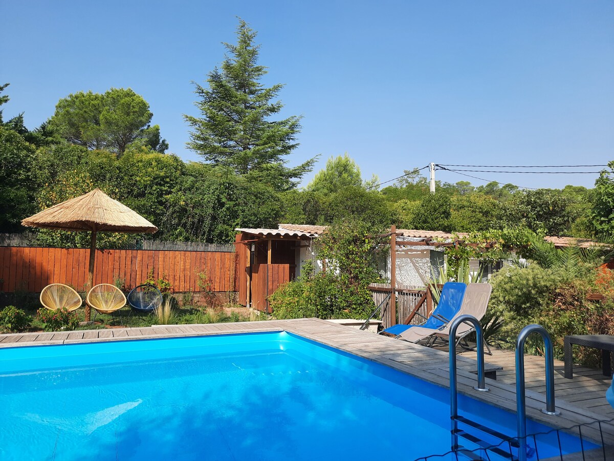 Võluv iseseisev majake Lieuran-Cabrières 'i külas 1950. aastate villa aia tagaosas. Otse alguspunkt matkamiseks ja mägirattasõiduks. See on ideaalne tervitus jalgratturitele. Turismikohtade lähedal, nagu Lac du Salagou (15 min autoga), Cirque de Mourèze, Saint Guilhem le Désert, Pezenase linn...