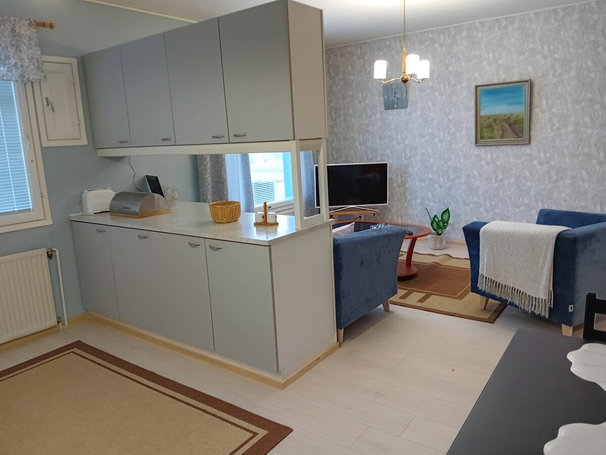 Hubane ridaelamu Karstula kesklinna lähedal vaikses piirkonnas. Kas vajad genealoogia jaoks lisaruumi? Või ehk veidi privaatsust ? Sobib perele,üksikreisijale,sõpradele või paarile. Kesklinna poed on mõne minuti autosõidu või jalutuskäigu kaugusel umbes 10-15 minutit (1,5 km). Saad ujuda läbi korteri tagahoovi või 200 m avaliku ranna. Päikeseloojang oma aknast. Suurepärane !