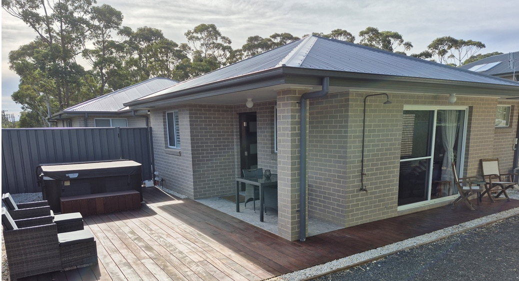 Vaid 200 m kaugusel Mollymook Beachi lõunaosast, golfi- ja surfiklubidest, restoranidest, kohvikutest ja parkidest avaldab see pelgupaik täielikku muljet! See paarile ideaalne eraldiseisev keskkonnasõbralik korter asub peamaja taga, pakub tänavavälist parkimist, autovarjualust ja privaatset sissesõiduteed. Erilise kingitusena oled teretulnud majutajate luksuslikku basseini ja lõõgastava terrassiala, kuuma ja külma duši alla ning saad korteri ümbruses asuvatest aedadest maheköögivilju ja maitsetaimi korjata.