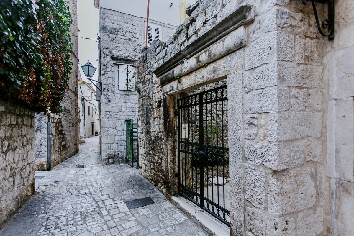 Trogiri südames asuvate kaunite renessansi ja barokksete paleede vahel asub meie korter. See on täis kaasaegseid elemente, jäädes truuks oma pärandile ja sajanditepikkustele. See asub vana ridaelamu teisel korrusel. Peavärav ja sisehoov on sissepääs vanasse ridaelamukompleksi, mille vana kivist trepp viib esimesele korrusele ja katusekorteri sissepääsuni. Veel üks järskude kitsaste treppide lend viib teisele korrusele ja pööningule.