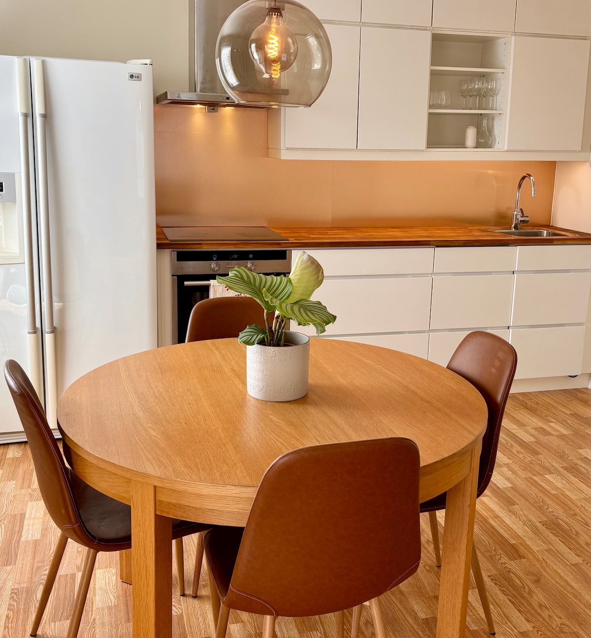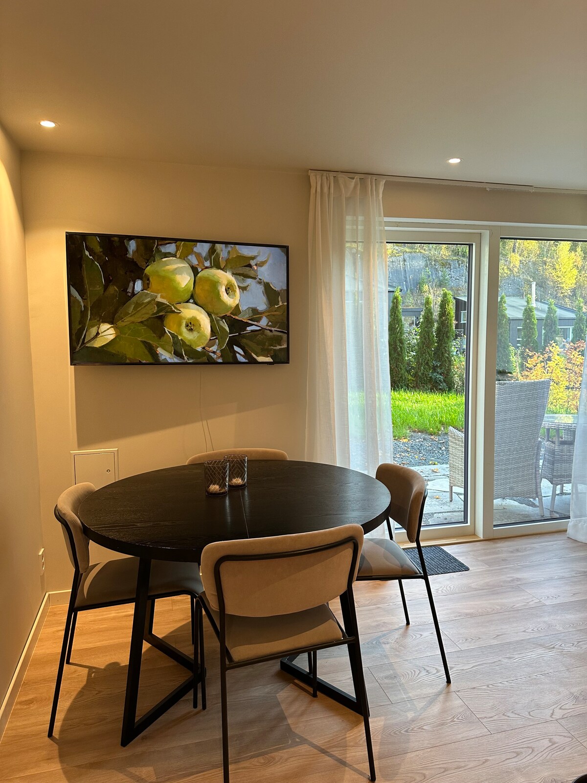 This is a beautiful apartment with an amazing view of the Oslo Fjord. You will be able to sunbathe in our lush garden and take a swim in the ocean from our boat dockage. The living room is quite large and has an open kitchen space. The private veranda is also perfect for enjoying the sun and the view. The apartment has two bedrooms and two bathrooms, one main bathroom and one WC with a washbasin.