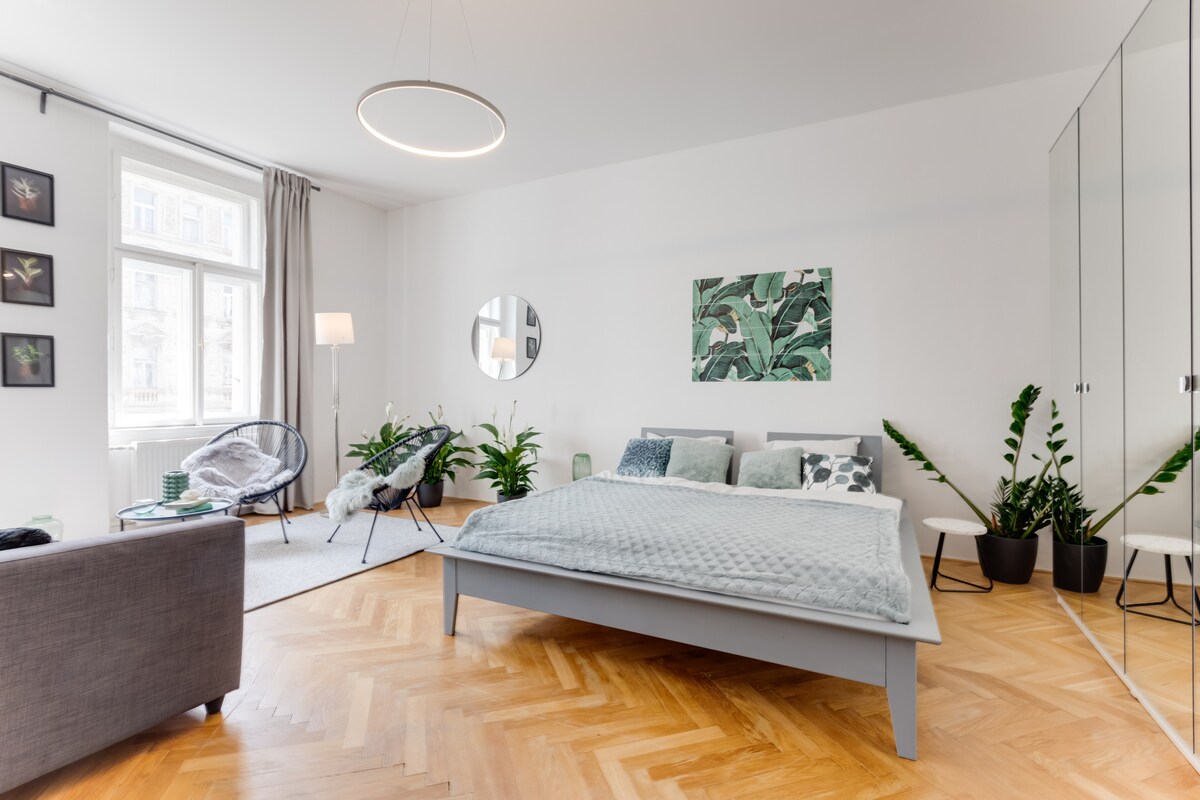 Valmista espresso krõbedas kööginurgas, et imetleda rõdu, kust avanevad romantilised vaated linnale juugendstiilis hoonest. Nõudepõrandad, traditsioonilised detailid ja puhas mööbel loovad selles valgusküllases stuudios rahumeelse õhkkonna. See ilus stuudio ajaloolises elukohas 20. sajandi algusest paneb sind end mugavalt tundma ja koduselt tundma. Rõdult avaneb suurepärane vaade Praha lossile.