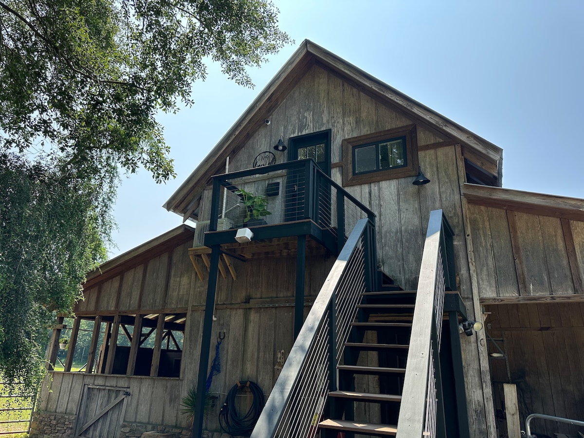 Come stay on our little farm in a unique, beautifully decorated, quaint barn loft. Experience a little bit of farm life during your stay. Enjoy being surrounded by nature, farm animals, and stunning country side, all while still being close to food and fun. Soak in a vintage tub, sit by the fire pit, relax and enjoy the view from your private balcony. A 15 minute drive gives you access to great restaurants, boutiques, a charming underground bookstore, a local brewery, and so much more.