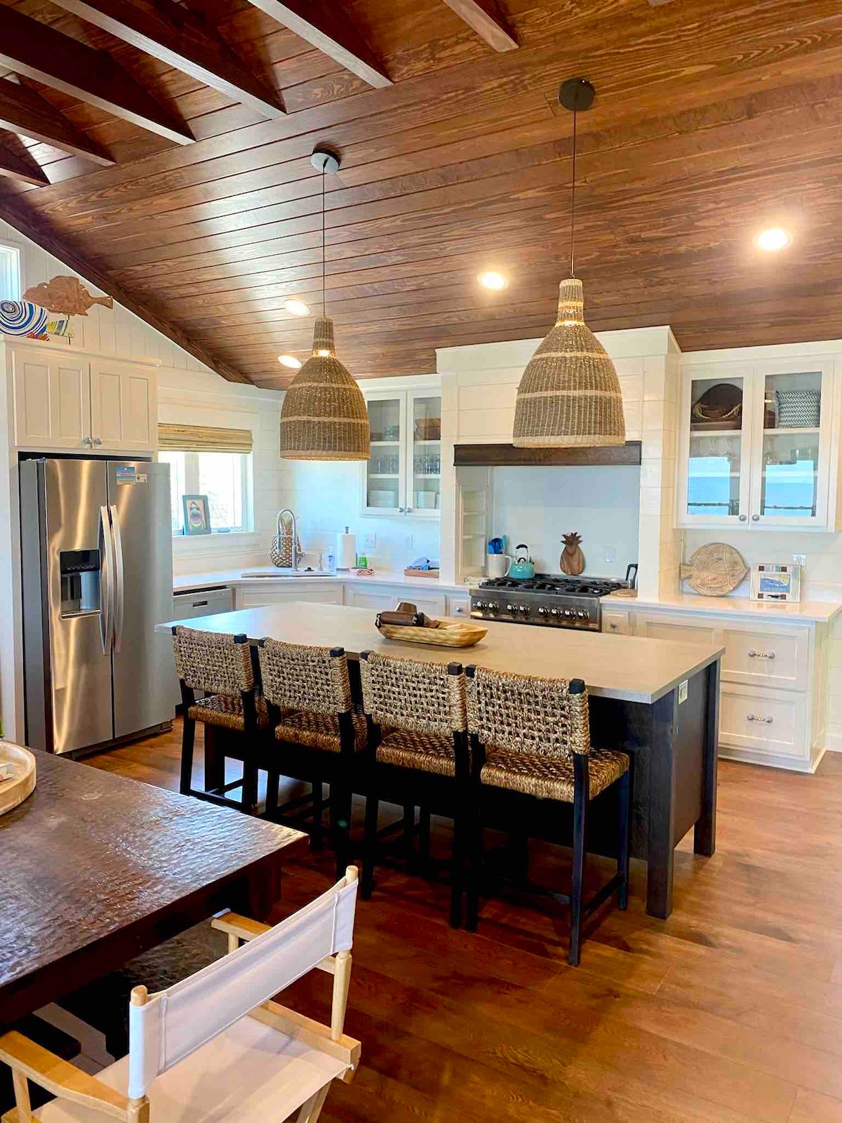 Lõõgastu kogu perega, naudi tüdrukute nädalavahetust või naudi privaatset paari puhkust selles imelises laheäärses majutuskohas. Jaluta rannas, naudi ilusaid päikeseloojanguid või kohtu uute sõpradega Tiki Hutis või jahisadamas (üle tänava). Vaata delfiine ja linnuvaatlust terrassilt või elutoast. Kas sulle meeldib süüa teha? Köök on hästi varustatud topeltahjude ja viikingite gaasipliidiga. Vaata jalgpallimängu ja naudi kokteili allkorruse veranda tikibaarist või tee võrkkiiges uinak.