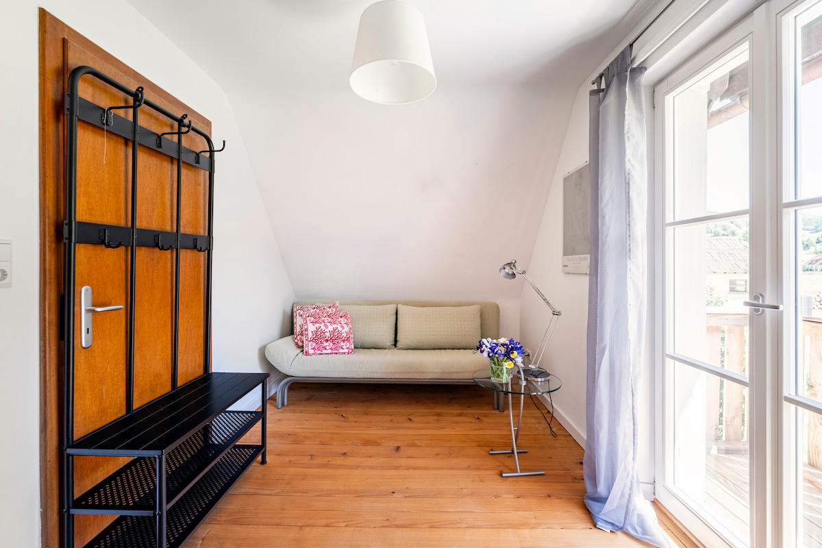 Meie vaikne korter asub kaunilt maapiirkonnas. Suure rõduga, kena avar päevavalgusega vannituba, väga vaikne magamistuba ja suur köögi-elu tuba. Ideaalne lõõgastumiseks või erinevate kohtade külastamiseks. Herb garden à la Hildegard Bingen või imelised linnad. Läheduses on ideaalsed puhkevõimalused: loodus sinu ukselävel või Europapark Rustis . Muidugi Konus - kaart teise poole riiki. Põnev !!