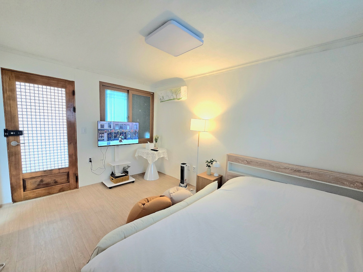 🚩„Valmistame ette mugava reisi ilma majutuskoha olemust hägustamata ja sihtkohale ebamugavusteta:)“ • Iga kord, kui saabub uus külaline, asendame pestud voodipesu ja püüame majutuskohta alati puhtas seisukorras hoida. • Kuumad kohvikud ja restoranid asuvad kogu tänaval See asub Gaekridan-gil 'i lõpus. (10-minutilise autosõidu kaugusel Hanoki külast) • 32-tollise nutika monitori vaatamine Söögituba, kus saad sooja einet süüa, Väike, kuid täisvarustusega köök, Magamistuba kaheinimesevoodi ja tualettlauaga, Ja umbes 10 vannitoast koosnevat pyeongi Rendime sulle kogu maja.