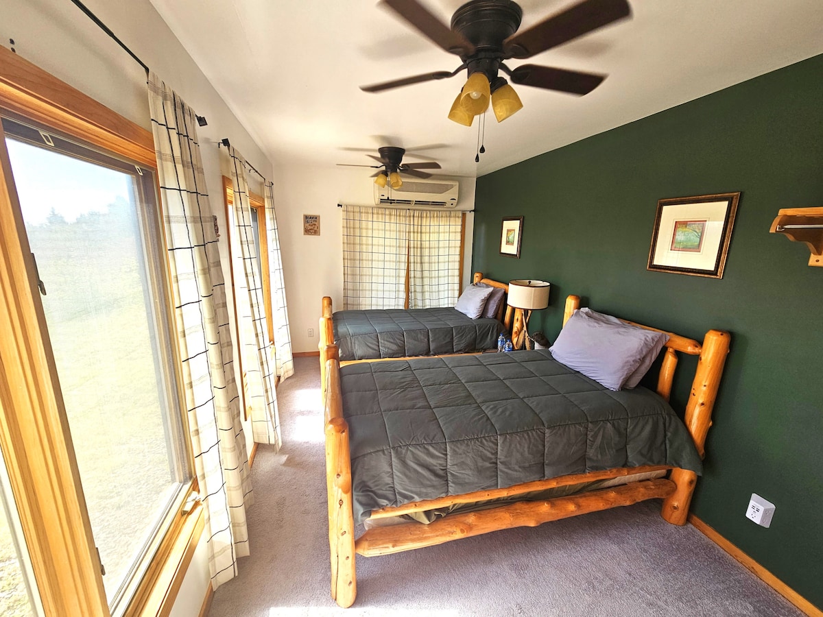 Welcome to the Deer Room at the Bear Mountain Lodge in Robbinston Maine! Situated on 560 acres in a 3700 sqft. luxury lodge along Howard Lake. Kayaks, Canoes, Paddleboards, Foosball, Billiards, High-speed internet, outdoor fireplaces and grills, atv rentals and trails, hiking, indoor and outdoor games for all ages. Rent the room or the entire lodge! 25 Minutes from Downtown Calais and the CA border. An hour from Machias and Lubec. Come stay with us and see what Maine life is all about!
