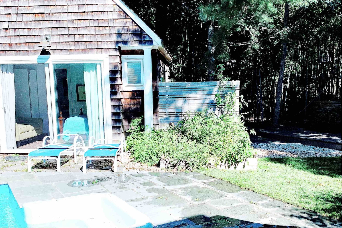 Escape and relax in this beautiful tranquil Southampton retreat! Newly remodeled cottage just blocks from the water. The home is nestled on 1/2acre quiet park-like setting located at the end of a long gravel driveway. Enjoy the private outdoor space with a fire pit, outdoor dining table, new dual BBQ and lounge chairs. Inside, the large dining room table easily sits 8. This stylish Coastal farmhouse has all new beds and furniture. Complete with Wifi, Cable, AC and Nespresso maker!