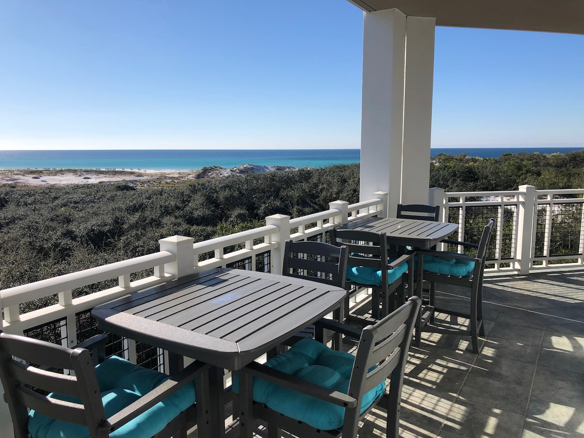 This BEACHFRONT townhouse is GULF FRONT with amazing OCEAN views out the back! Walk out your own deck and toes in the sand! Spectacular views from the living room, master and 2 decks. Updated with all new furniture! All these details will make your vacation seamless and relaxing! Located in the heart of 30A (Seagrove Beach) with a 2 mile bike ride to "The Hub", and nestled right between Watercolor and Rosemary Beach...Your family can experience it all from this perfect location.