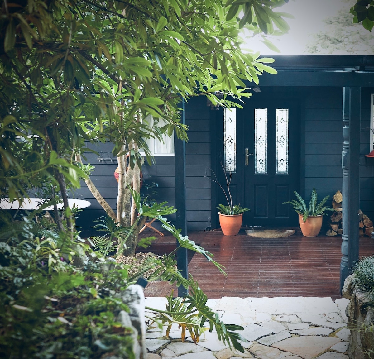Arriving through antique gates, wander down wisteria covered walkway to your home away from home. Outdoor tiled undercover area with dining/living space, lit in evenings with silk lanterns invite you outside for a special occasion. Light-filled cottage, open plan living/dining area. Bedroom boasts plush queen bed for a blissful nights' sleep. Bathroom invites indulgence with a rainforest shower. Fully equipped kitchen with washing machine. Thoughtful touches throughout.