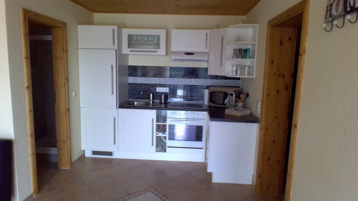 Me kutsume teid Buch, meie uus, mugav, iseseisev korter, ilus terrass ja aed. Kui terrass on avatud, saate nautida päikest, valgust ja loodust. Külmal aastaajal pakuvad mugavust põrandaküte ja tammepuust plangud. Sinu vannituba on otse elutoaga ühendatud. Korterisse pääseb privaatse ligipääsu kaudu. Väike kööginurk asub elutoas ja on saadaval teie enda tarbeks.