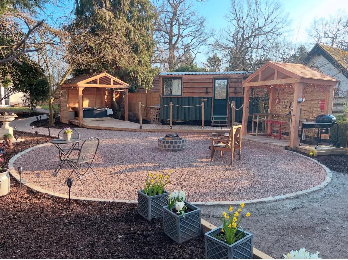 Mitte kõik ei taha olla põllul, kus pole miili kaupa mugavusi. Tunne end mugavalt ja sea end sisse selles maalähedases majutuskohas, mille ühelt küljelt leiad rahuliku metsa ja hirved ning teiselt küljelt mugava ühenduse küla, restoranide, lennujaama ja NEC-iga. Lõkkease, väliköök ja mullivann loovad romantilise õhkkonna, karjaseonn pakub aga maalähedast võlu ja väikese ruumi pakutavat pelgupaika, mida sa hotellist ei leia. Tänu lihtsale ja turvalisele parkimisele saad veelgi rahulikumalt magada.