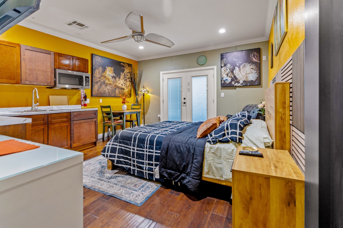 "Perfect space for anyone . Near all major freeways. Detached back house. Centrally located from world famous Disneyland, Anaheim Convention Center, Chapman University and beaches. Modern styled studio with private back section in a family friendly neighborhood in Old Towne Orange. Plenty of space for you to enjoy park like back yard, fruit trees and quiet neighborhood. Indulge in a lazy breakfast, take a stroll to walking distance Orange Circle for vintage shopping, dinning & weekly events."