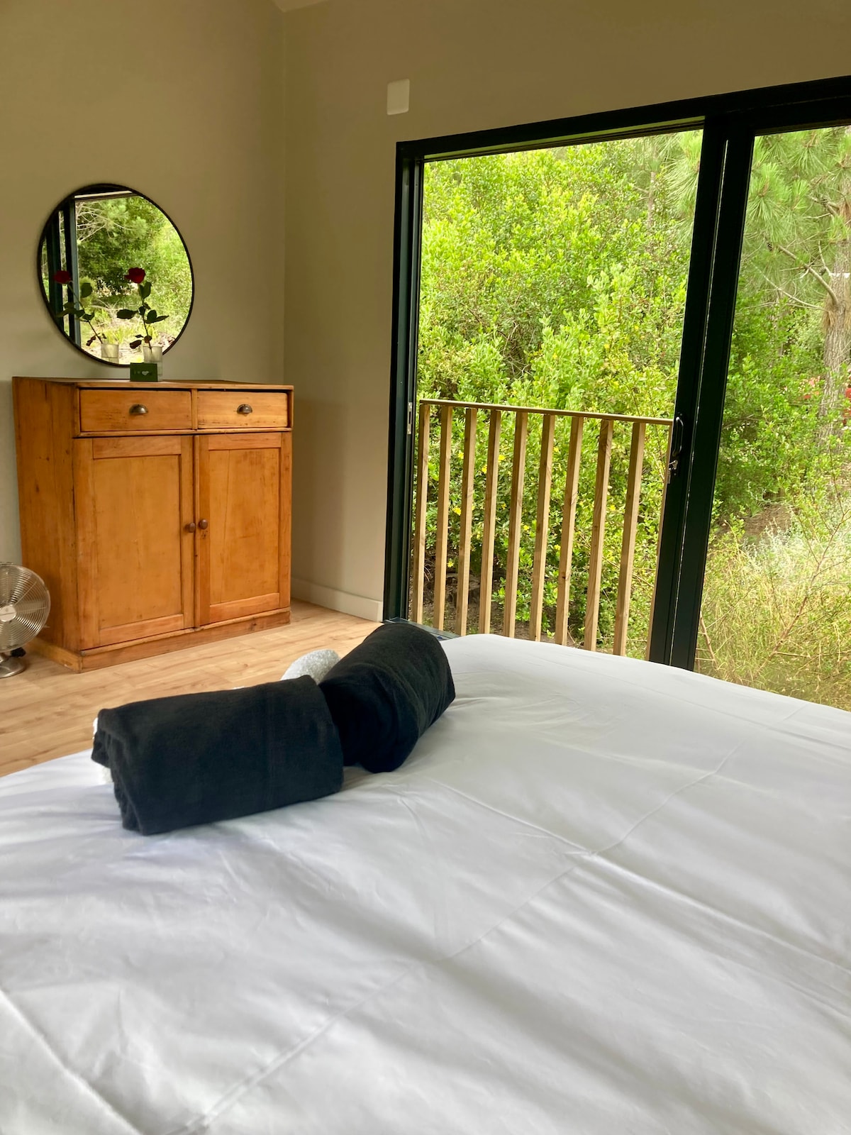Maalähedane võlu Wildernessi südames – 3 km Wilderness Centralist. Hubane metsamaja, kus saab magada kokku 6 inimest, 2–4 täiskasvanut ja 2 last või täiskasvanut pööningul. See ilus puidust puhkekodu, mis asub puulatvade vahel, on rahulik ja privaatne. Hubased eluruumid väikese avatud planeeringuga köögi ja privaatse terrassiga, kust avaneb vaade ookeanile ja metsale. Kvaliteetsed voodipesu, vannirätikud ja seebid on olemas, samuti kiire WiFi. Ühine kivibassein ja grillimisala majutuskohas.