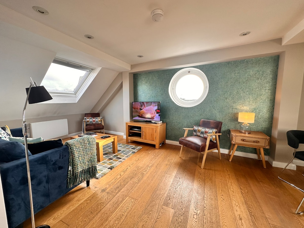 Suurepärane katusekorter selle kesklinna Windsori asukoha kolmandal korrusel. Lift teisele korrusele, seejärel sisemine trepp katusekorterisse. Palju valgust ja õhku. Puitpõrandad. Luksuslik köök graniidist tööpindade, nõudepesumasina, pesumasina ja kahe vannitoaga, sealhulgas üks magamistuba. Parkimiskoht maastikul ühe auto jaoks. Saad jalutada Windsori lossi ja poodidesse vähem kui 3 minutiga.