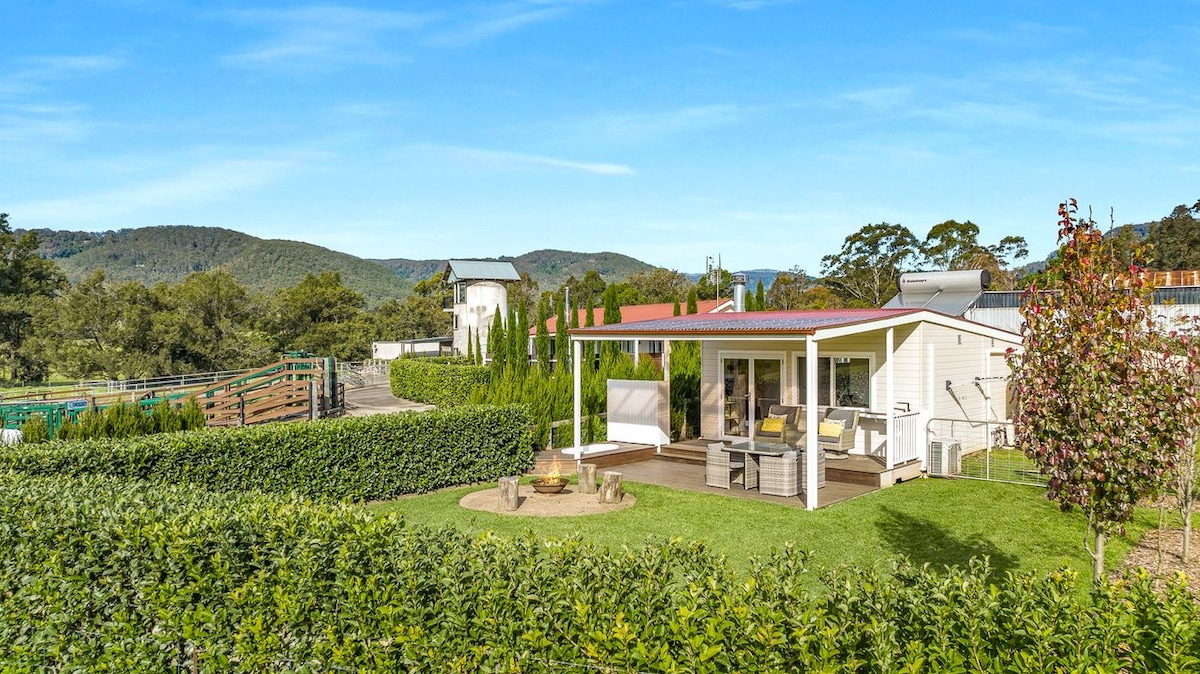 @littleburrow_cabinandcottage A relaxing couples retreat at this stylish tiny house on 6 peaceful acres of our boutique equestrian property 2km from the charming rural village of Exeter with its popular cafe. Surrounded by small farms and the peace of the countryside while still being only a drive-(Bundanoon 10mins Mossvale 15min drive) to the charming towns of the Southern Highlands. Its especially quiet at night-enjoy the firepit & outdoor bath while gazing at the stars. Small dogs on request