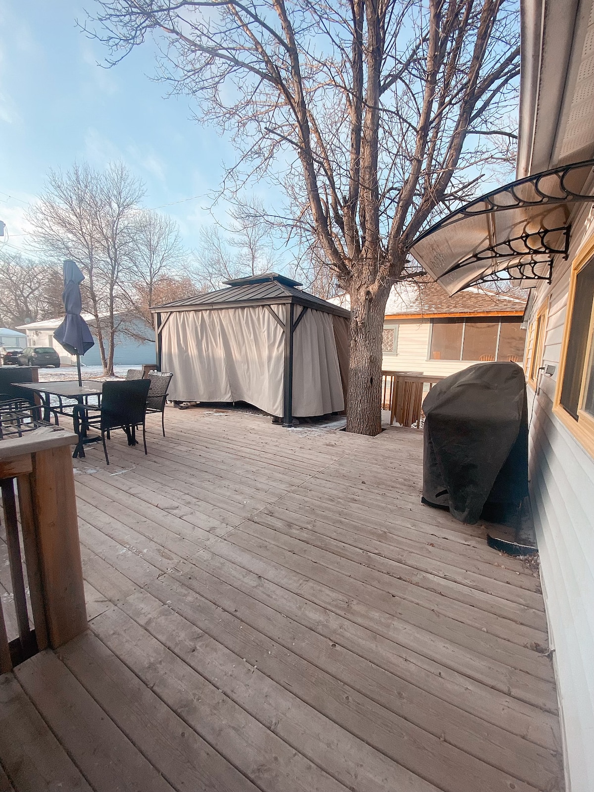 Welcome to our cozy all-season cottage in Winnipeg Beach - just one block from the beach and marina. Enjoy the lakeside community while staying at our stylishly-finished three bedroom, one bathroom retreat, featuring a wood-burning stove, streaming-only smart TV, in-ceiling speakers, high-speed Internet, fully-stocked kitchen, and a full bathroom with heated tile floors, large walk-in shower, and washer and dryer. The backyard has a gazebo with sectional and the front has a large deck with BBQ.