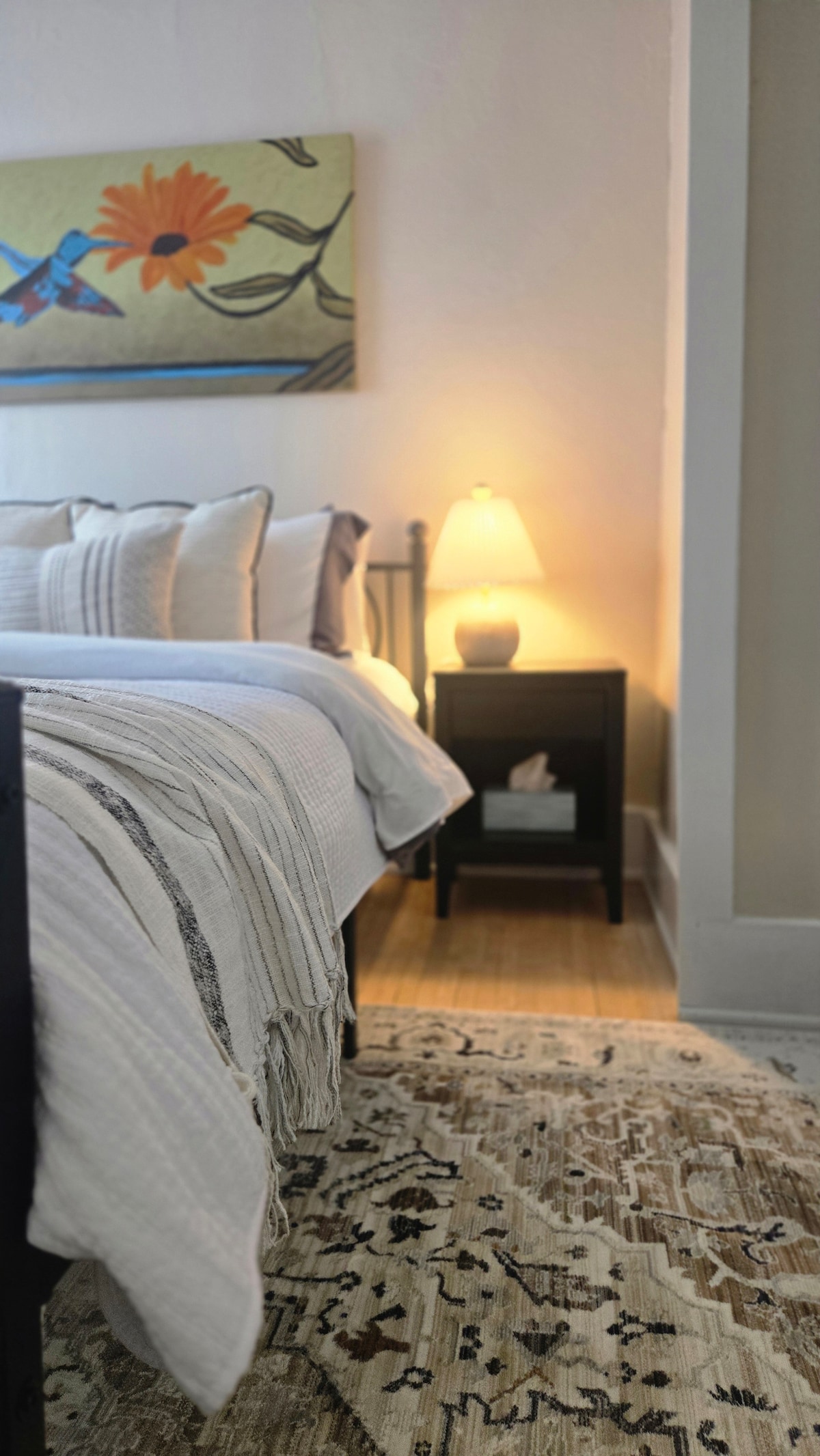 Cozy, fully equipped apartments designed for short or long stays. Each unit includes a kitchenette, private bathroom, and comfortable living area. This apartment is one of five private units in the building, each listed separately on Airbnb. Recently renovated, Apt #2 features a bright, spacious bedroom with plenty of natural light. The kitchenette is compact but functional, with a rolling island and drop leaf for added counter space—ideal for meal prep or dining.