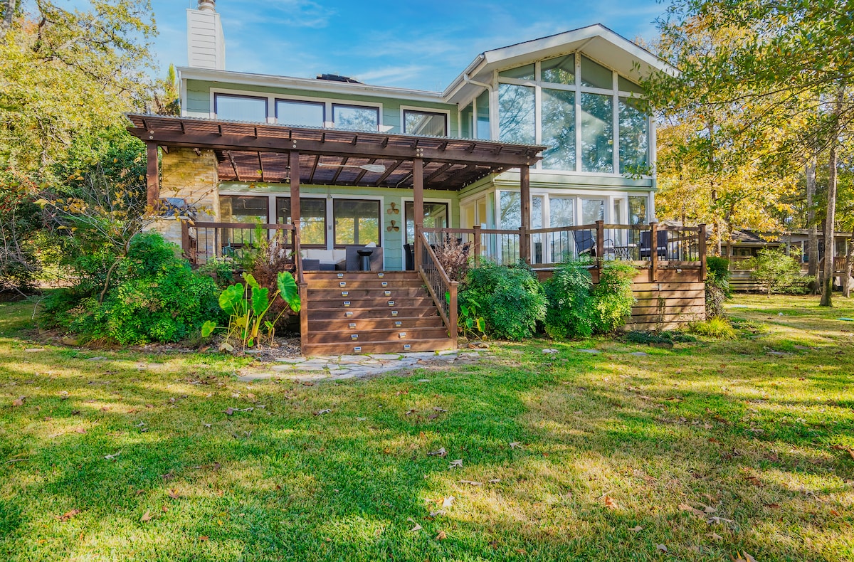 The Great Escape is on the shore of Lake Fork in Emory, Texas. See on võluv 3 magamistuba, 2 vannitoaga maja puidust taladega, laevaseinad ja palju muud! Tagahoovis on suur katusega veranda grilliga, ilus pergola üksikute kiigega ja suur kaetud dokk paadiga, samuti kaetud ja katmata istumisalad. The Great Escape asub vaikses privaatses naabruskonnas ja sobib ideaalselt meeste kalapüügireisiks, tüdrukute koosviibimiseks või mis tahes puhkuseks, mille sa valid!