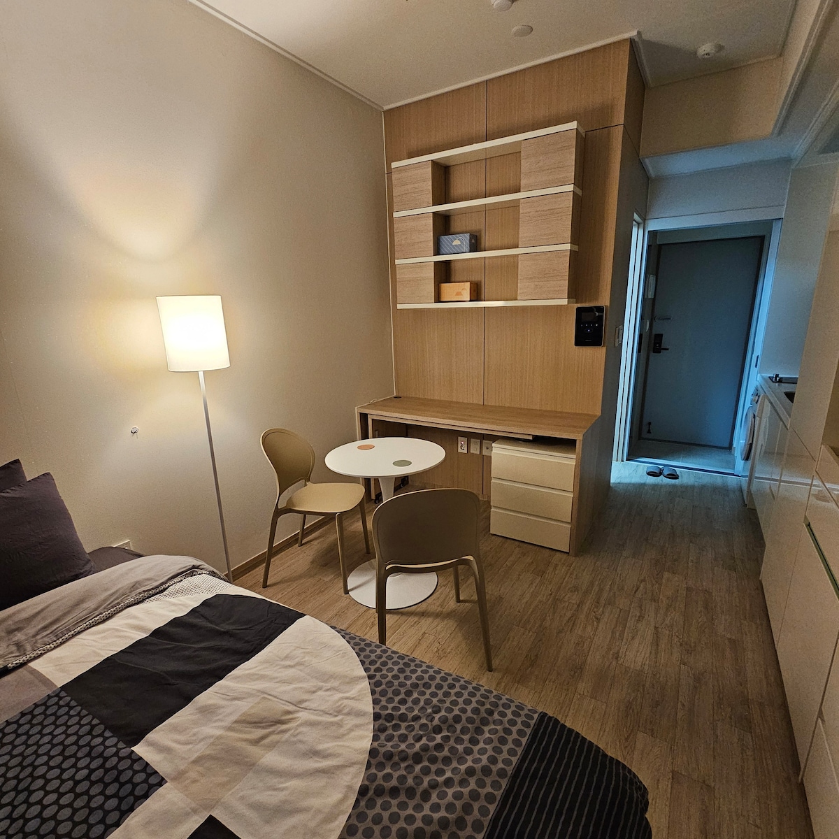 See on kahekorruseline privaatne majutuskoht, mis asub vaikses kohalikus elamurajoonis Mokdongi ristmiku lähedal Deongchon-dongis, Gangseo-gu, Soulis. Läheduses asuvad jaamad on Mokdongi jaam ja Deongchoni jaam ning peapiirkonnas liikumiseks on mugavam kasutada bussi. --- 🚎 Transport Incheoni rahvusvahelisse lennujaama jõudmiseks kulub lennujaama bussiga ilma transfeerita umbes 1 tund ja 20 minutit ning autoga umbes 45 minutit. Gimpo rahvusvahelisse lennujaama (Jeju koduterminal) jõudmiseks kulub umbes 25 minutit autosõitu Hongiki ülikooli jaamast Yeouido Hangangi parki jõudmiseks kulub umbes 20 minutit autosõitu. Tasuline parkimiskoht (vajalik eelnev broneering) 🌇 Koostis Sisaldab 1 kaheinimesevoodit ja 1 üheinimesevoodit Baashind kahele inimesele, saadaval kuni 5 inimesele (Lisakülalised 15 000 KRW inimese kohta, saadaval on lisavoodipesu) Sobib perereisidele, paaridele, sõprade kogunemistele ja ärireisidele 🧚♀️Eelised (eelbroneering) 9.00-10.00 Pärast 5000 KRW lisamakset Võid kasutada 4. korruse katuseaeda (Stillness Nest) 1 tunni jooksul. --- ❗️Lifti ei ole ja pead minema trepist.