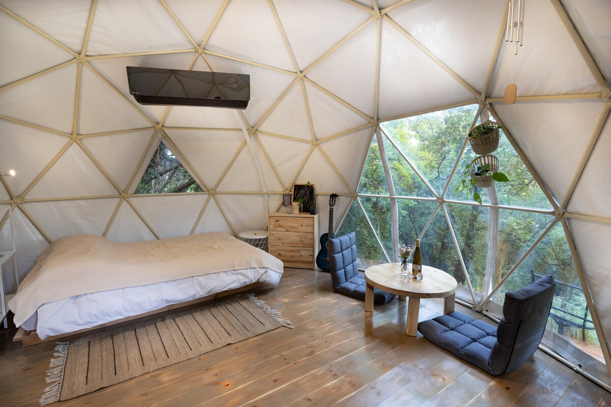Welcome to our magical dome surrounded by oak trees in a peaceful moshav. Enjoy this one-of-a-kind experience, with modern amenities and natural beauty. Perfect for couples and individuals that wish to escape the hustle and bustle, and enjoy a peaceful retreat with unique hiking points, great food and more. Our dome is also perfect for a cozy winter stay — equipped with a powerful air conditioner, a radiator, and warm blankets so you can enjoy all the charm and comfort of the winter season.