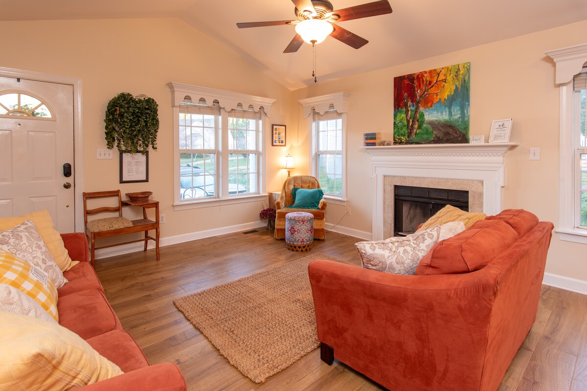 Tere tulemast meie ilusasse ajaloolisse jõe bangalosse - ideaalne peredele, väikestele rühmadele või romantilisele puhkusele! See võluv puhkekoht on vaid mõne minuti jalutuskäigu kaugusel Fallsi tammist, Neuse 'i jõest ja Greenwayst, kus on sulle avastamiseks miilide kaupa radu. See 1901. aasta bangalo säilitab endiselt suure osa oma ajaloolisest sarmist, kuigi see on äsja renoveeritud ja stiilselt sisustatud, et pakkuda sinu peatumise ajal ülimat mugavust ja naudingut. **PÄRAST broneerimist võtame eraldi tasu 30 $ lemmiklooma kohta öö kohta.