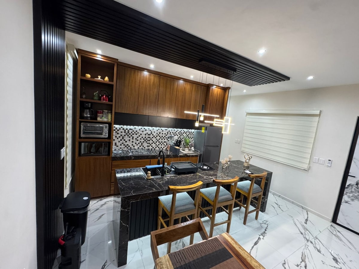 Naudi mugavat ja rahulikku peatumist Mérida põhjaosas, mis on linna kõige eksklusiivsem ja turvalisem piirkond. Meie ridaelamu asub privaatses piirkonnas, kus on ööpäevaringne valve, ja on täielikult varustatud, et saaksid end koduselt tunda. Seal on kliimaseade kõigis ruumides, täisvarustusega köök, tööala kiire internetiühendusega, basseinimugavused, terrassigrill ja laste mänguväljak ning hoolikalt läbimõeldud sisekujundus, mis pakub sulle mugavust ja harmooniat.