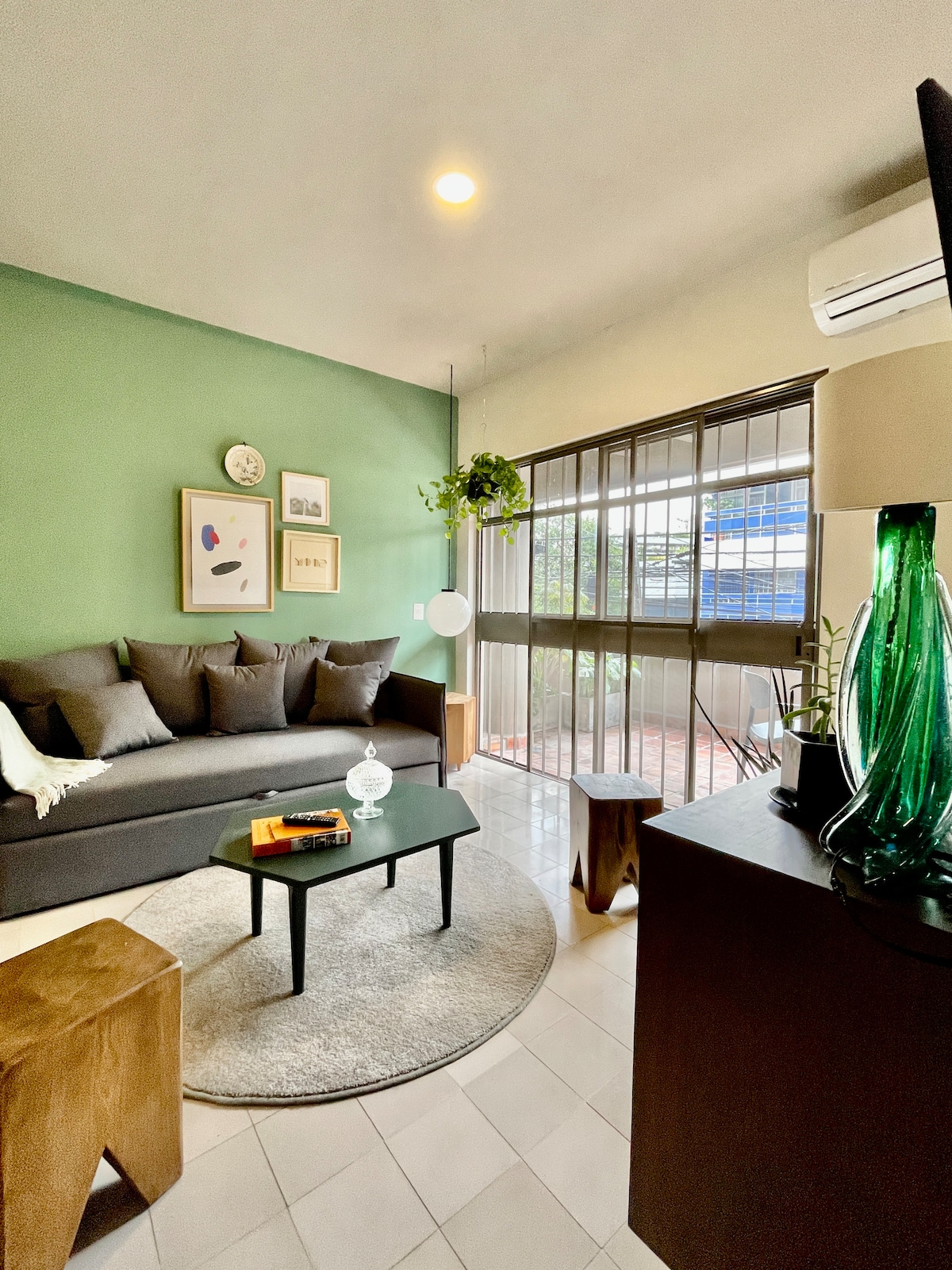 Solar Estudio #1: Luz y Naranjos Vive la esencia local en este luminoso estudio de concepto abierto. Su gran personalidad nace de sus enormes ventanales de piso a techo, que inundan el espacio de luz natural y ofrecen una vista relajante a los naranjos de la calle Guillermo Prieto. Equipado con cocina integral, baño de diseño y Wi-Fi de alta velocidad, es el refugio ideal para quienes buscan comodidad, estilo y una ubicación inmejorable en un ambiente fresco y vibrante. ✨🍊