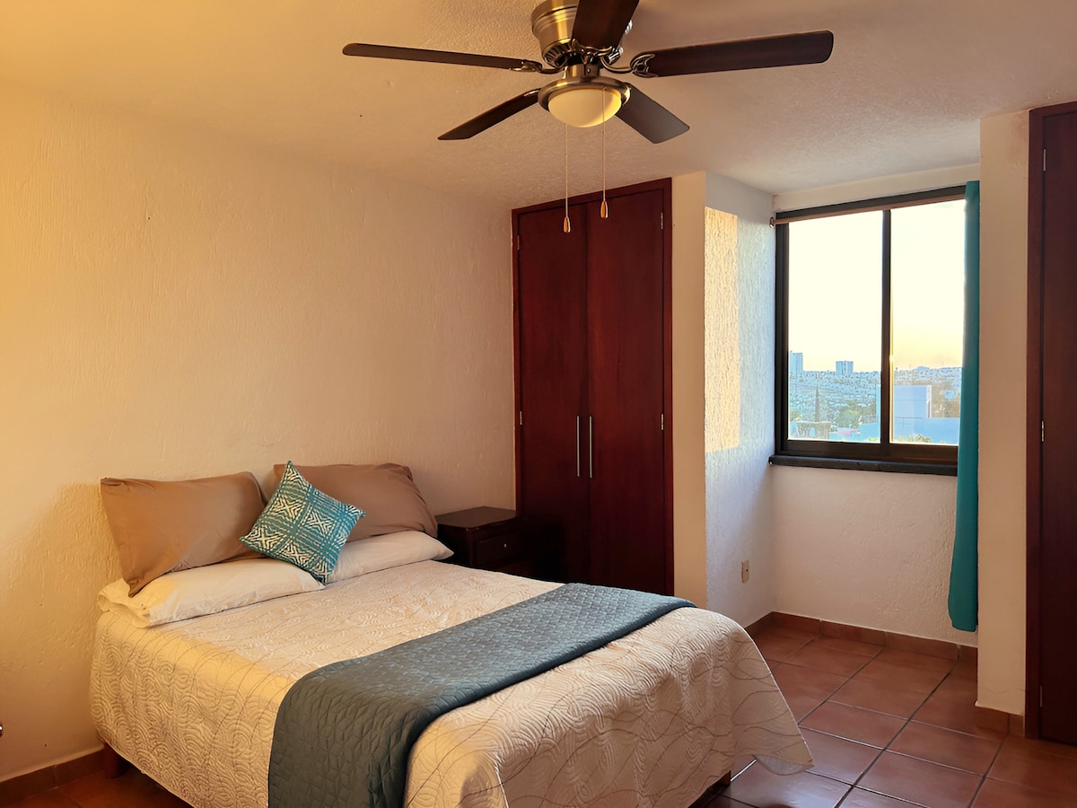 Rent this cozy condominium apartment with a pool and ideal amenities for your next vacation! This beautiful space has 2 bedrooms, 2 bathrooms, a fully equipped kitchen and a living room with views of the Queretaro countryside. Relax in this Airbnb, very quiet and comfortable, equipped to make your stay a pleasant experience. We issue invoice.