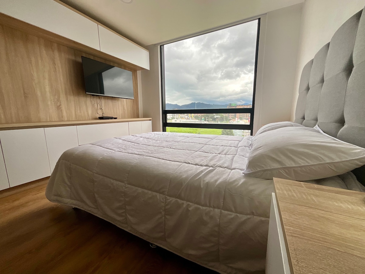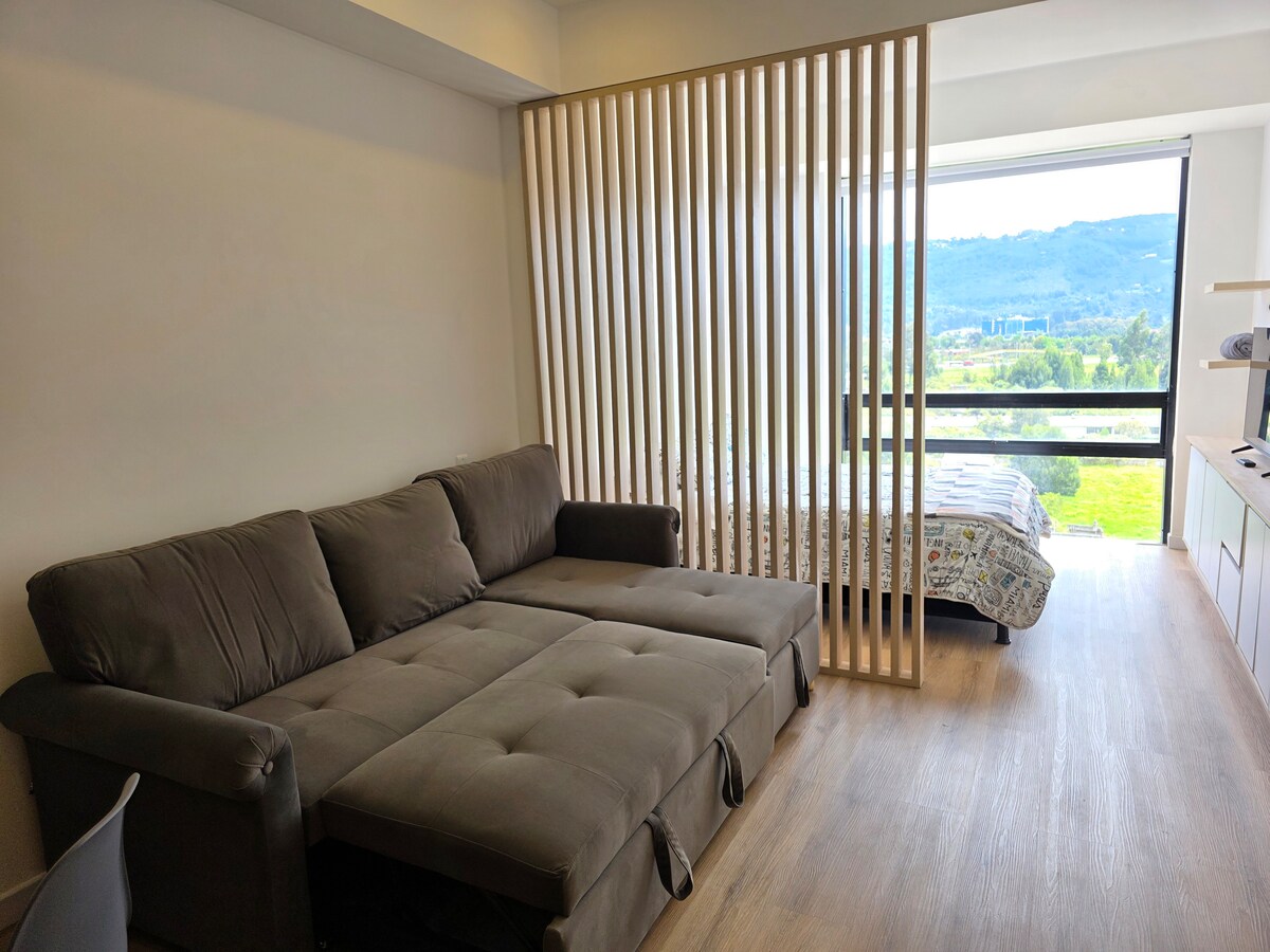 Kaasaegne uus korter Chias, ideaalne töötamiseks või puhkamiseks. Selles on kaheinimesevoodi, diivanvoodi, varustatud köök, funktsionaalne vannituba, pesuruum, lampiga kirjutuslaud, nutikas teler ja heliriba. Kena vaade, kvaliteetne viimistlus, kiire wifi ja suurepärane loomulik valgustus. La Sabana ülikooli, Centro Chía ja Fontanari lähedal. Juurdepääs aiale, terrassile, sotsiaalsele puhkeruumile ja ühistranspordile. Ideaalne lühi- või pikaajaliseks peatumiseks koos kõige vajalikuga!