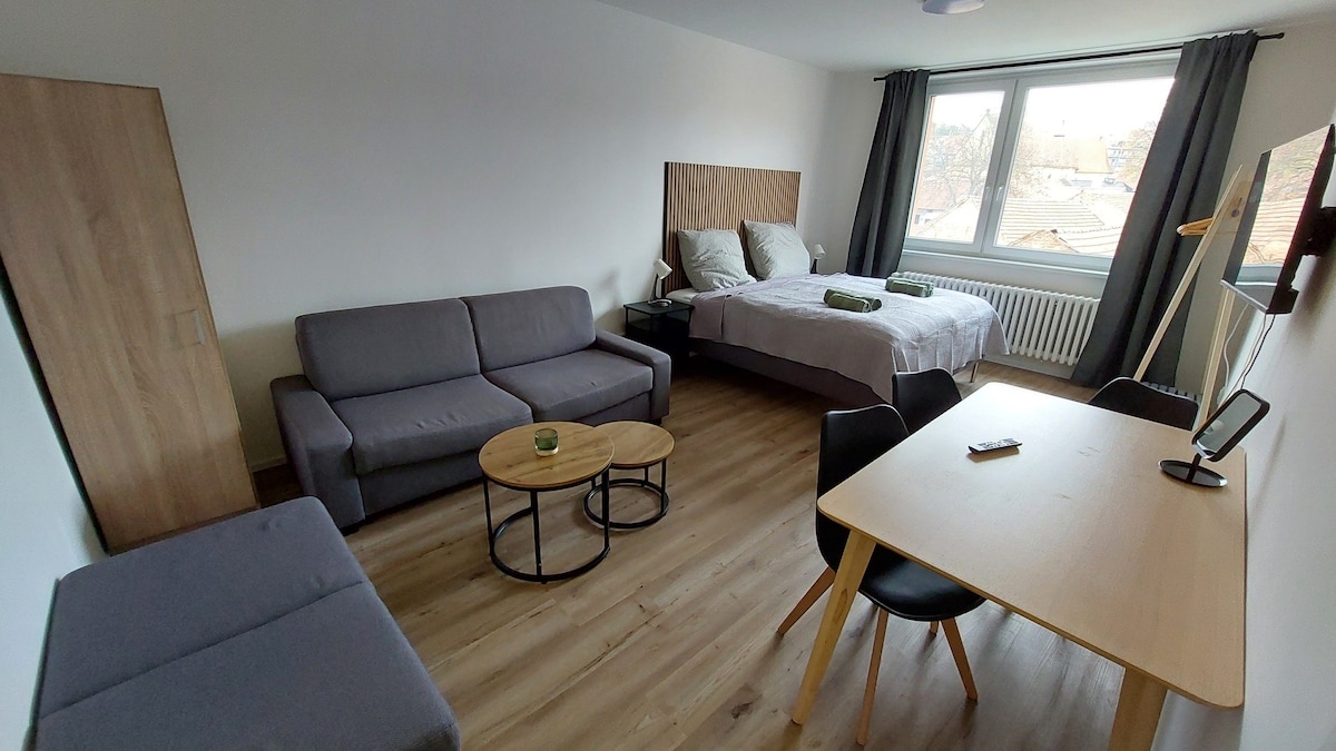 Mustade ja valgete korterelamute korterelamu asub vaikses asukohas, mida ümbritseb loodus. Majutuskoht asub Bratislava BVV näitusekeskuse lähedal ja Praha kiirtee väljapääsu lähedal. Korterites on täielikult sisustatud mööbel, seadmed, kliimaseade ja külaliste privaatsus on tagatud kardinatega. Külalised saavad Nespresso kohvi, tasuta teed ja vett. Korteris on tasuline minibaar.